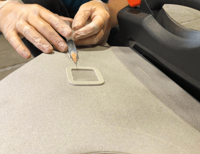 At Straatman Dredging & Construction, we use the well-known wet sponge technique: A sponge is set at low voltage, where the voltage is adjustable depending on the dry layer thickness. When the sponge slides over an imperfection in the coating, the liquid penetrates into the substrate, which creates an electrical circuit and sets off the alarm. Invisible holes become “audible” this way.